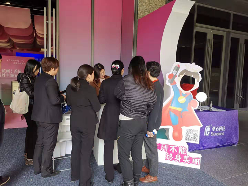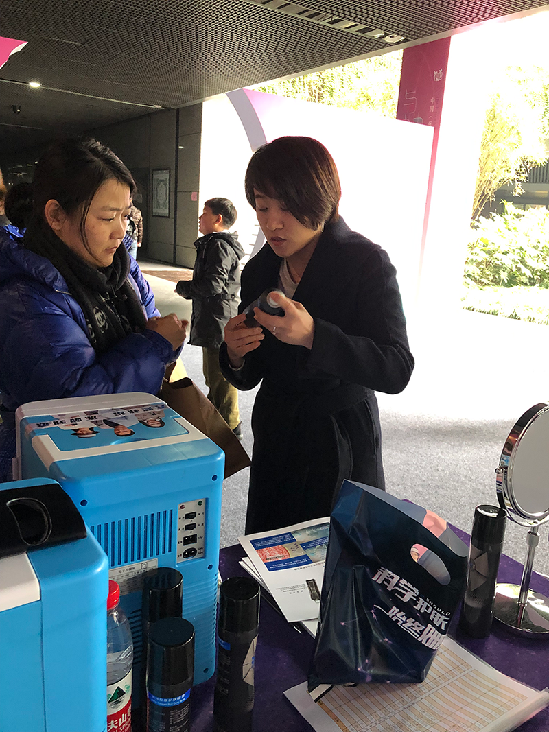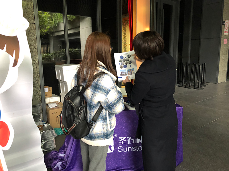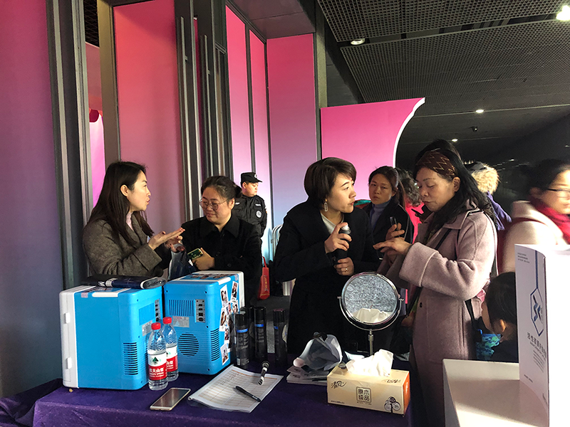 圣石科技受邀參與此次公益活動,公司企劃部、公關(guān)部負責人周曉女士、梅娜女士帶隊協(xié)力,并為前來參與活動的市民朋友每人公益派送正裝姍渡?活性膠原護膚噴霧一支。