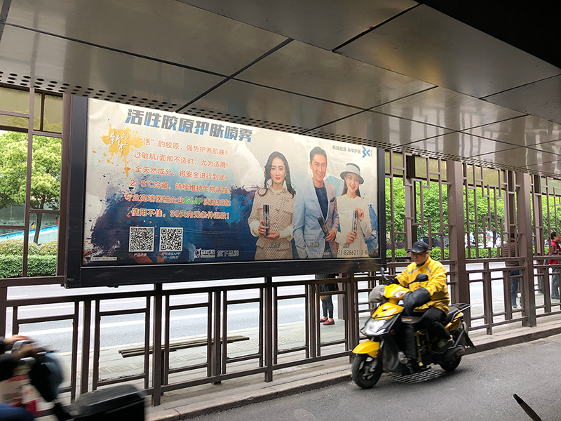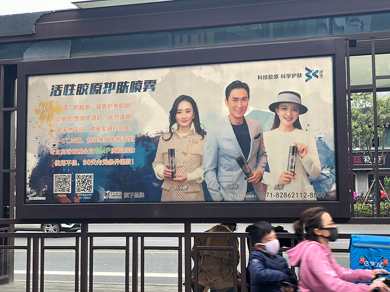 2019春夏之交,圣石科技旗下科學(xué)護(hù)膚品牌姍渡活性膠原護(hù)膚噴霧產(chǎn)品線下廣告在杭城各大公交站點(diǎn)陸續(xù)啟動(dòng)。