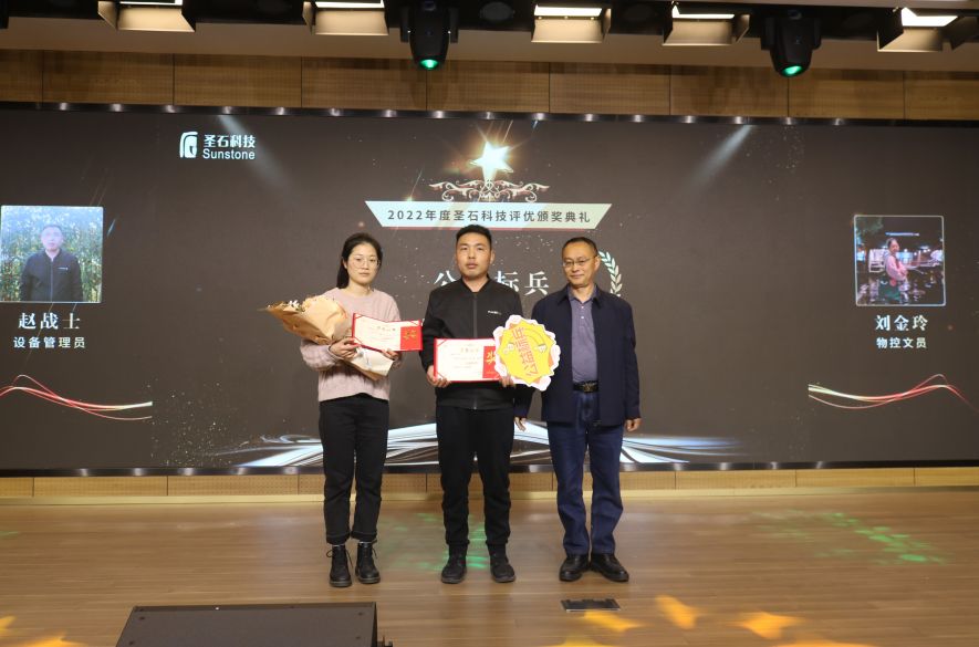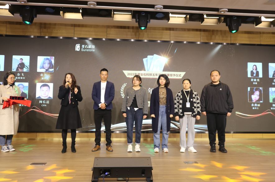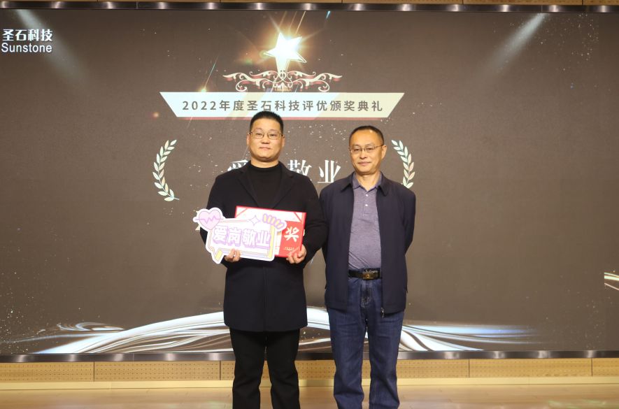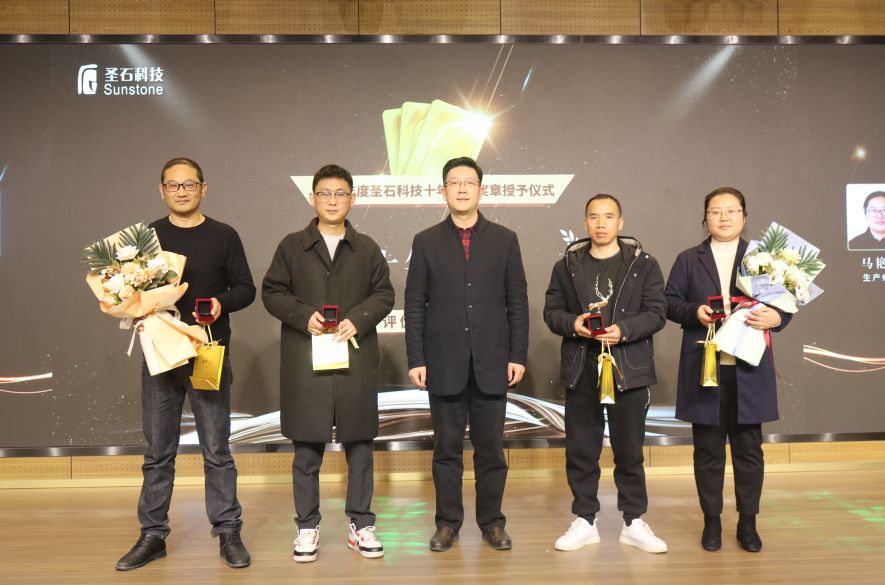 會(huì)中,總經(jīng)理石磊和副總經(jīng)理孫莎莎分別為與企業(yè)同行已滿十年及五年的老員工頒發(fā)了特別定制的金銀質(zhì)企業(yè)徽章。表彰他們一心扎根于圣石,為圣石奉獻(xiàn)了青春與年華,貢獻(xiàn)了智慧和力量。五年與十年的堅(jiān)守,不僅是他們對(duì)事業(yè)的熱愛,更是他們對(duì)圣石的認(rèn)可!