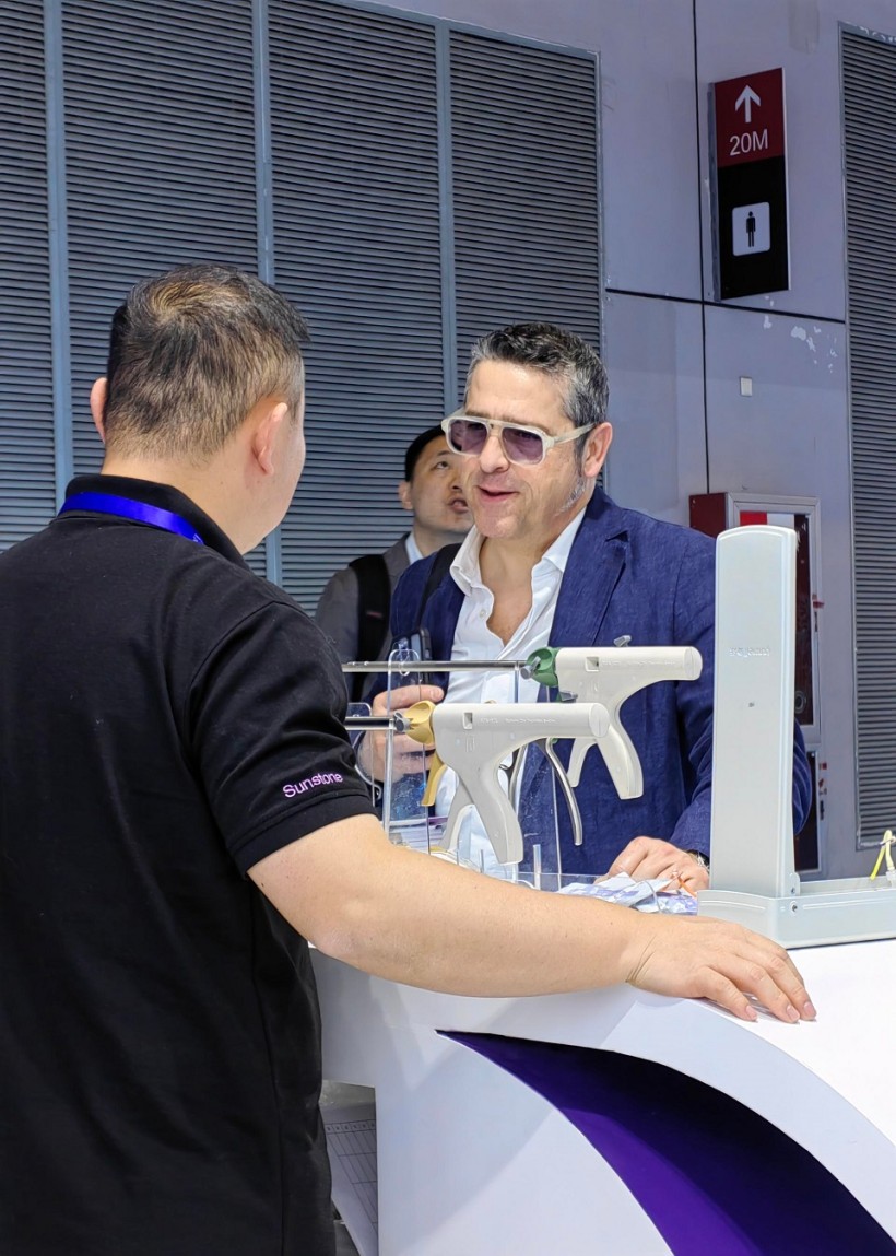 2025年4月8日,第91屆中國國際醫(yī)療器械(春季)博覽會(簡稱“CMEF”)在國家會展中心(上海)啟幕,圣石科技在創(chuàng)新醫(yī)療器械研制的銳意進(jìn)取,成為展會的看點(diǎn)之一。作為管腔組織閉合及吻合方案的專業(yè)提供者,圣石展品吸引了大量國內(nèi)外客戶的專程體驗(yàn),展臺前人流不息,洽談氣氛熱烈。