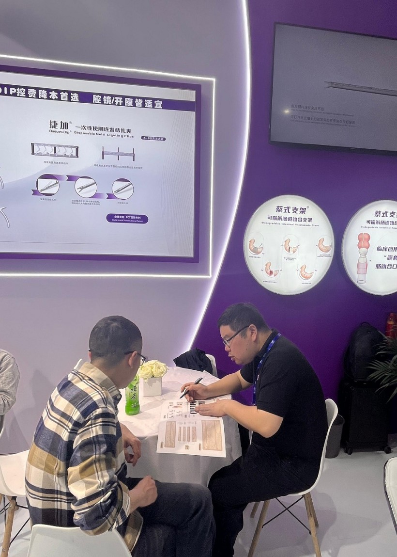 圣石同期展示的獨(dú)創(chuàng)產(chǎn)品又一次聚焦了眾人目光。全球首創(chuàng)捷加?一次性使用連發(fā)結(jié)扎夾及配套捷施?連發(fā)施夾鉗,其獨(dú)特的可重復(fù)使用連發(fā)鉗專利設(shè)計(jì),以及“2-6枚的連發(fā)夾靈活選裝”專利技術(shù)不僅降低耗材使用成本,更通過流暢的操控性適配腔鏡復(fù)雜場景需求。圣石與浙大邵逸夫醫(yī)院聯(lián)合研制,可應(yīng)用于腸道吻合與轉(zhuǎn)流的創(chuàng)新產(chǎn)品蔡式支架?“可崩解腸道吻合器”使此項(xiàng)全球創(chuàng)新術(shù)式配套產(chǎn)品具有吻合時(shí)間短、無永久殘留異物、不破壞吻合口粘膜下血管,并能預(yù)防吻合口漏、可避免人工肛門及二次手術(shù)、治療周期縮短、減少患者生理心理創(chuàng)傷等多項(xiàng)臨床優(yōu)勢。