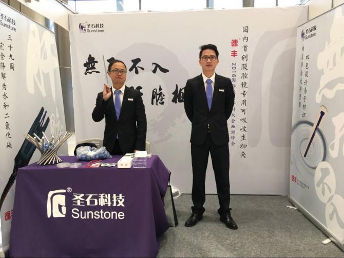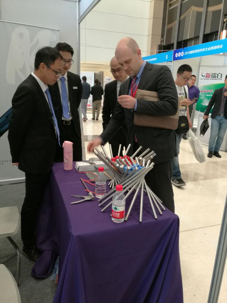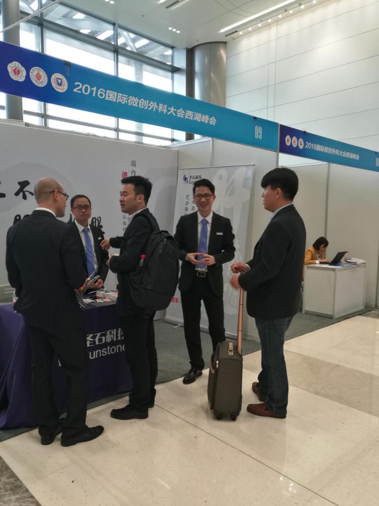 會(huì)議茶歇期間,我公司展位吸引了眾多專家醫(yī)師們的關(guān)注,其中有來自英國(guó)皇家英格蘭外科學(xué)院的專家代表前來了解我公司產(chǎn)品---速豐?可吸收止血結(jié)扎夾,現(xiàn)場(chǎng)我司工作人員欣然以嫻熟的英語為其做介紹與產(chǎn)品演示,我公司產(chǎn)品的特點(diǎn)及優(yōu)勢(shì)得到了英國(guó)皇家英格蘭外科學(xué)院專家的認(rèn)可與肯定!